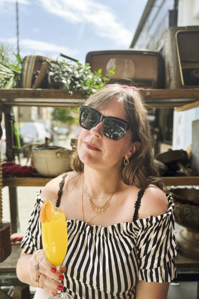 In de tweede helft van juni gingen we vier dagen naar Londen. Ik wilde graag een toneelstuk zien met Jack Lowden uit Slow Horses dus maakten we er ineens een lang weekend van. Het weer was za-lig. Hoogzomer, het was bij momenten echt puffen. Al is het dertig graden, dan nog gaat een English breakfast er altijd in. Met een mimosa er bij nog beter.