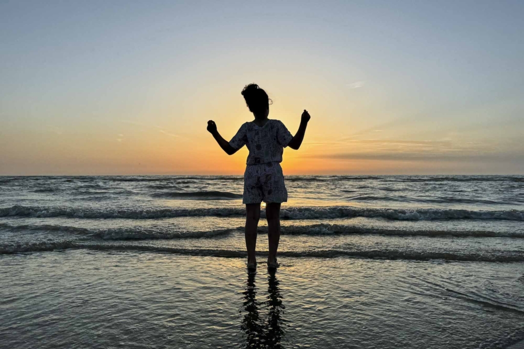 Zoals elke zomer trokken we bij mooi weer meteen naar zee. ‘s Avonds, wanneer de grote meute al huiswaarts is. Het was genieten met Emma en ze zette een hele grote stap en durfde het water in gaan.