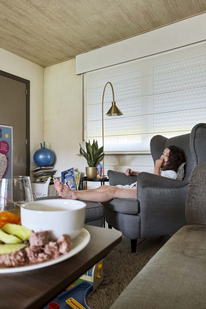 Vakantie dat is ook gewoon chillen en dat kunnen Emma en ik als de beste. Zie haar liggen in haar favoriete zetel, chipje en drankje bij de hand. Dit zijn van die momenten waar ik echt van geniet.