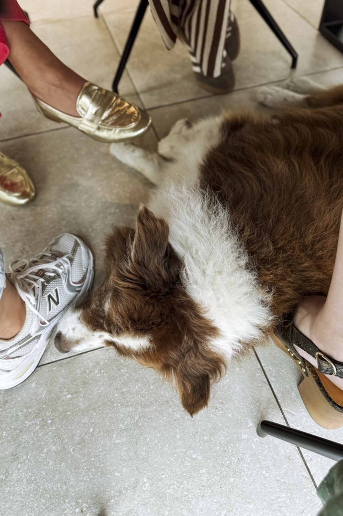 Op de laatste dag van de officiĂŤle zomervakantie gingen we met enkele collega’s bij een collega eten. Die laatste mag gerust een restaurant openen: we hebben lekker lang getafeld en gebabbeld en mijn tenen werden mooi op temperatuur gehouden door ĂŠĂŠn van de honden des huizes.